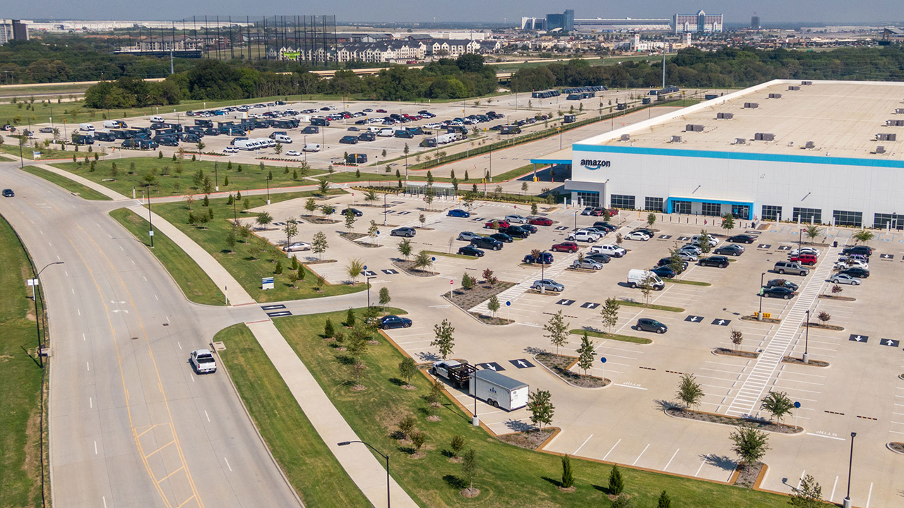 Our team at Westwood provided civil site design services for two Amazon Delivery Stations in the Dallas-Fort Worth area. For DDF5 in North Fort Worth, spanning 63.7 acres, our scope included extensive landscape architecture design, berm grading, and native plantings to preserve existing trees and enhance sustainability. We collaborated closely with MEPs to plan for future EV charging stations in the parking areas. At DDF6 in South Fort Worth, part of the 236-acre Risinger Industrial Sector, we conducted large-scale master-planning, designed off-site infrastructure for roadways, and balanced parking needs with delivery truck queuing lines. These projects contribute to Amazon's innovative logistics network, facilitating efficient short-range deliveries between fulfillment centers and customers' homes in urban areas.