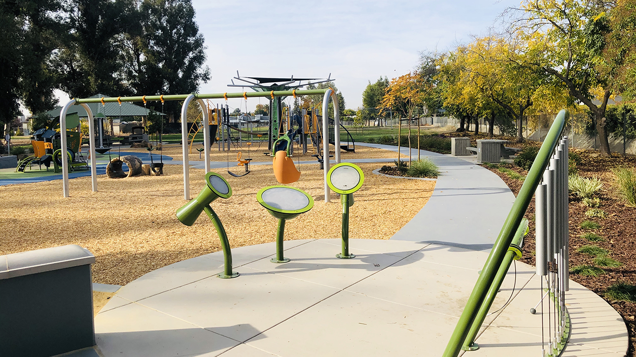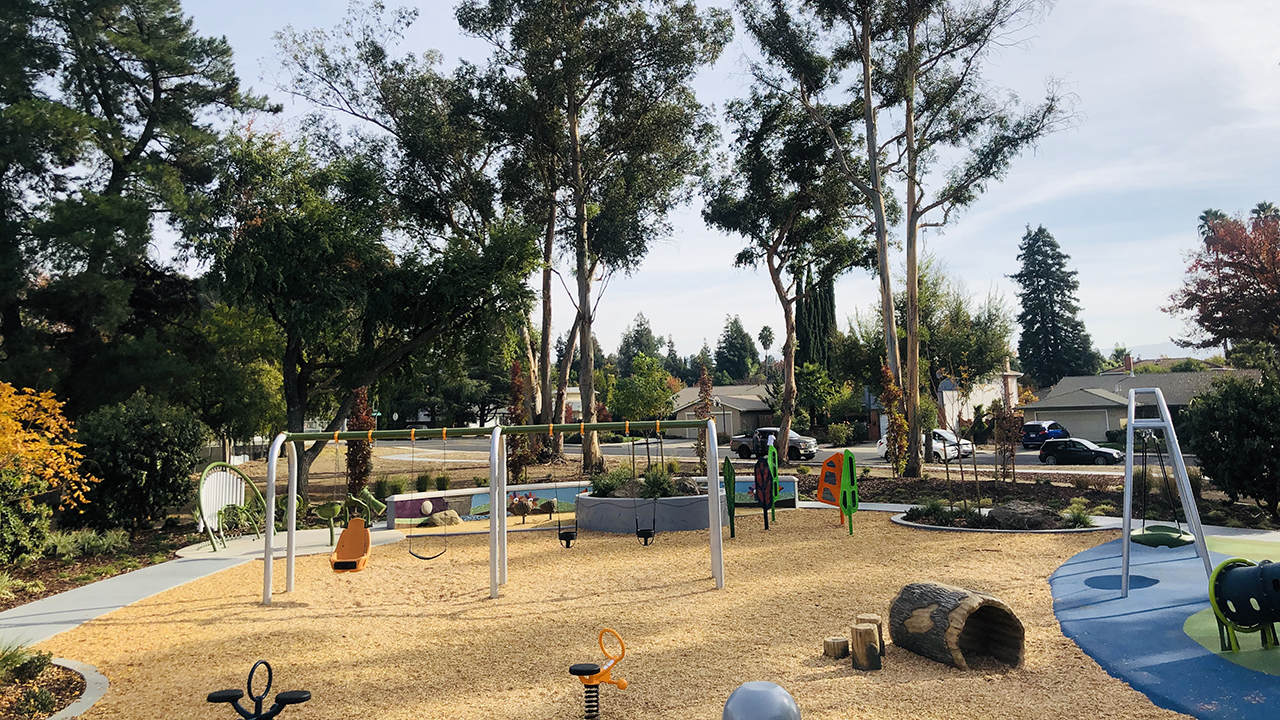 Big Trees Park Playground is a nature themed playground operated by Livermore Area Recreation and Park District. With unique design elements such as a large 16-foot treehouse, boulder rocks, a tree maze, and a nature themed sensory wall, this site provides a myriad of opportunities for play and exploration galore!