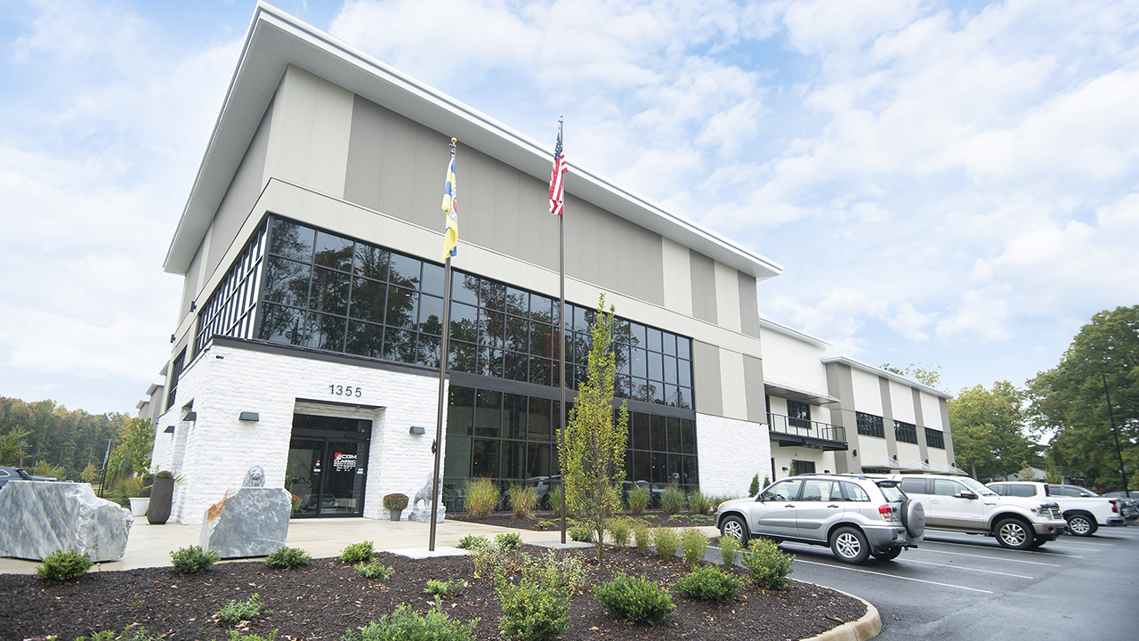2-story steel-framed facility combining showroom, fabrication, and warehouse space