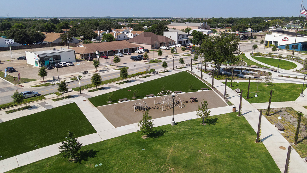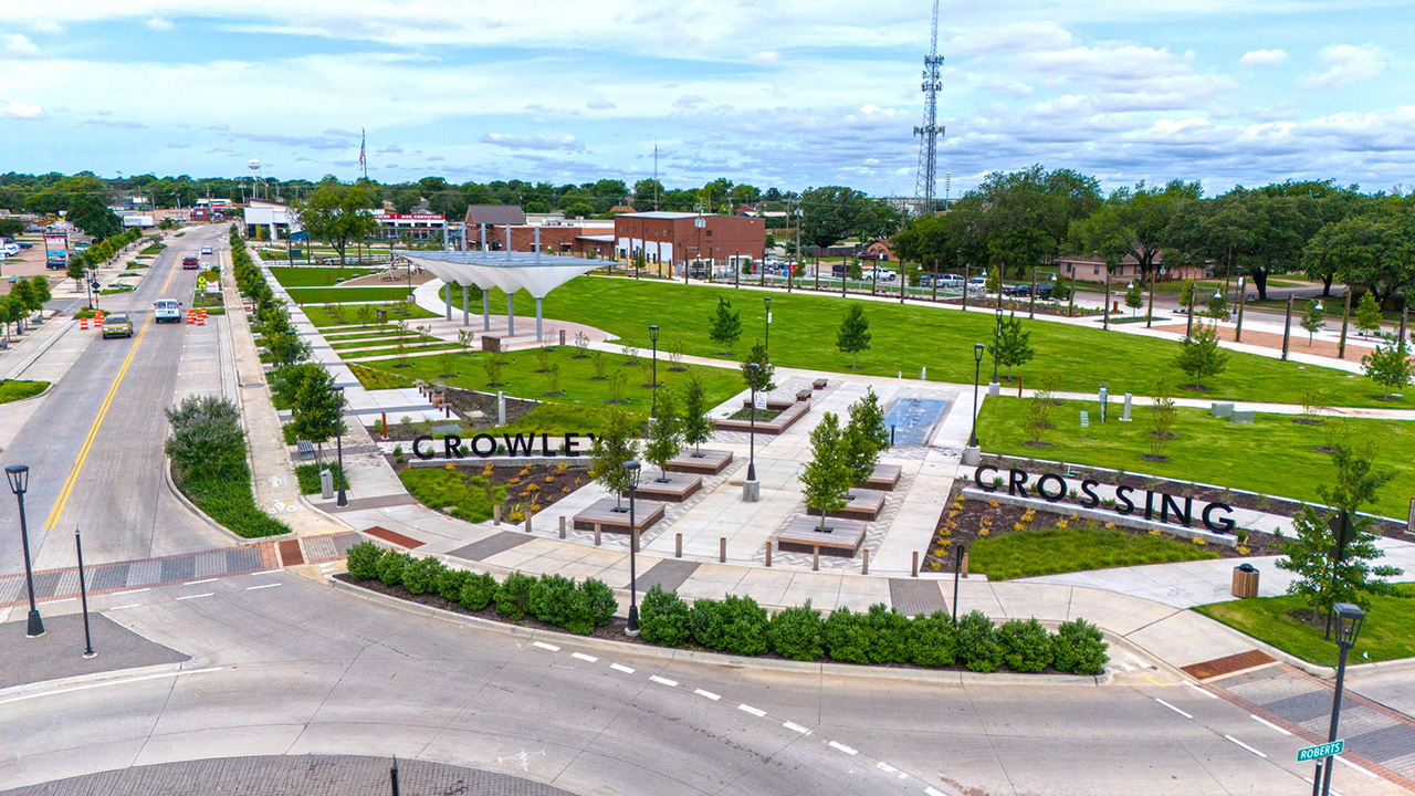 Westwood partnered with the City of Crowley, TX, to develop the city’s first comprehensive Parks and Trails Master Plan and deliver the 4.1-acre Crowley Commons Downtown Park (often referred to as Crowley Crossing Park), featuring promenades, green spaces, a splash pad, and event areas. These projects provide a strategic roadmap for future park development and have revitalized downtown Crowley with accessible, multi-use public spaces that support community life and economic growth.