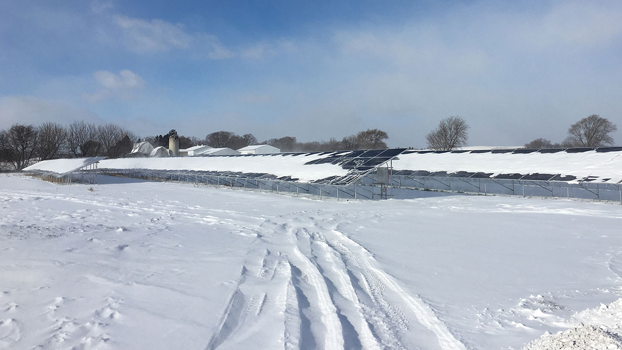 Two community solar garden projects at 5 MWac and 3 MWac, fixed-tilt ground-mounted arrays
