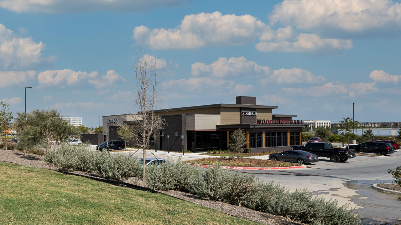 Site civil design, planning, surveying, and landscape architecture for 1.74-acre restaurant site. Included surrounding public infrastructure design, TxDOT permitting for deceleration lane, and native/adaptive planting. Site was permitted through the local Design Review Board.
