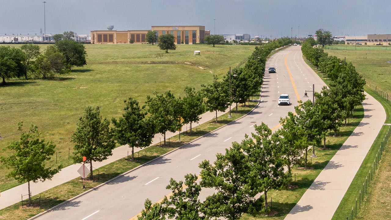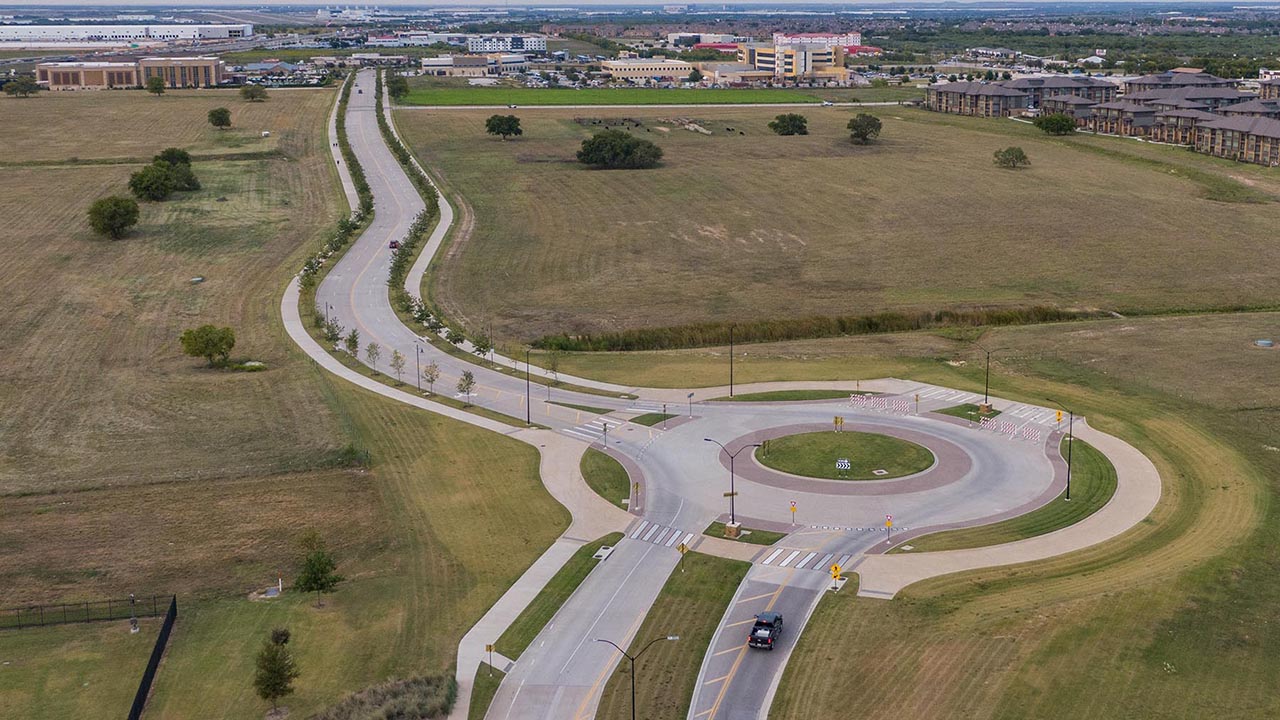 Our team designed Founders Way, a 3,200 LF, 4-lane collector roadway and associated roundabout at Hillwood Parkway intersection. A 15-foot-wide colored concrete bicycle path around the roundabout was included in the design. The project includes roadway, water, sanitary sewer, and storm drainage design, as well as the geometric layout design of the roundabout.