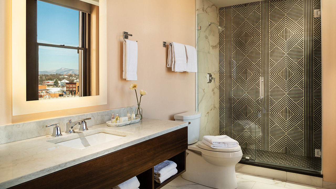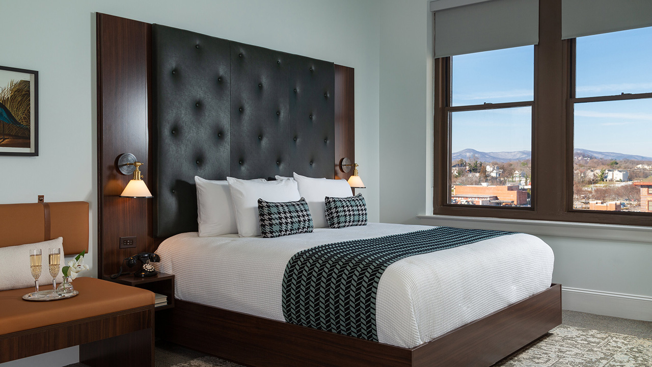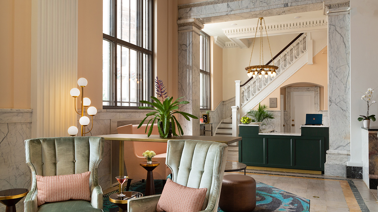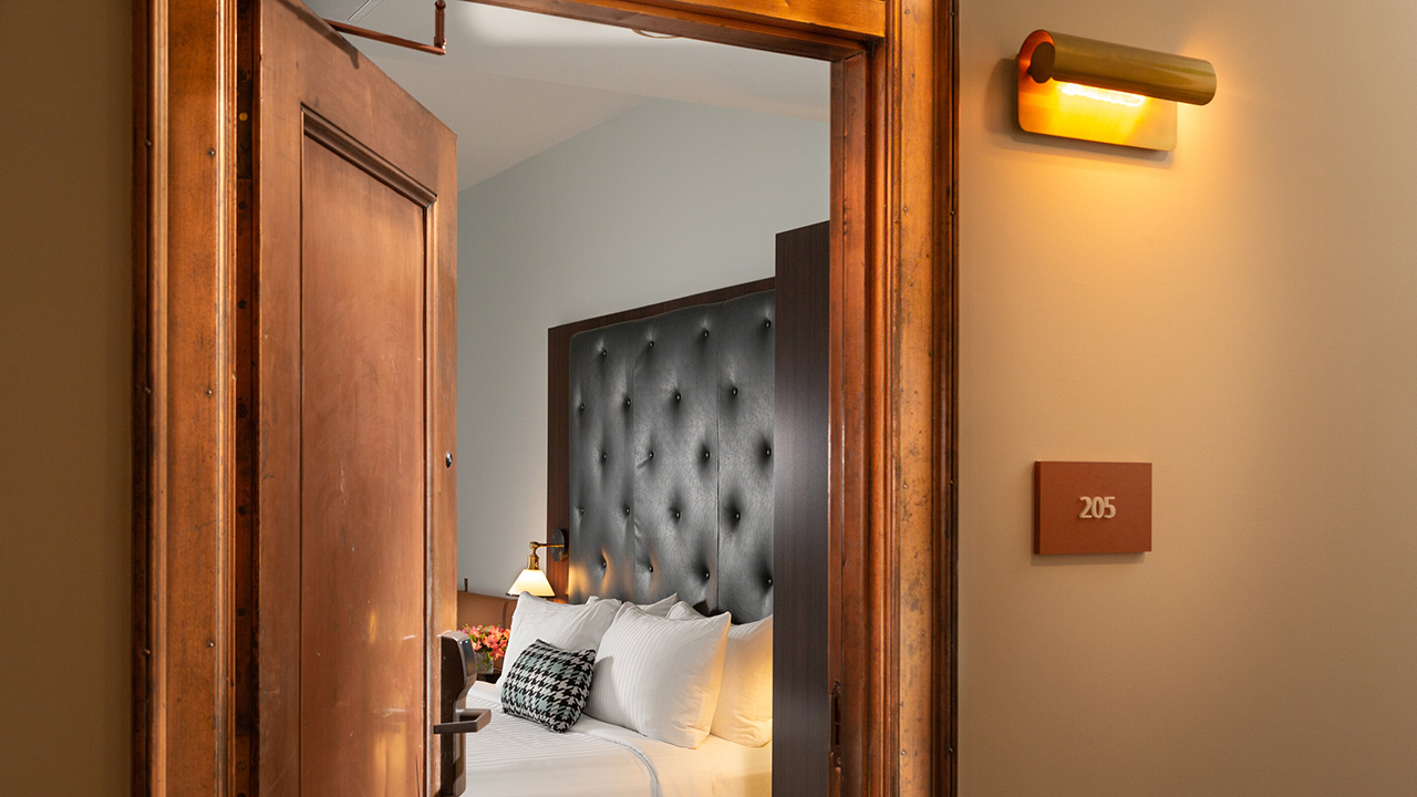 Architectural and engineering design for the adaptive reuse of a historic bank into a boutique hotel with custom guestroom layouts.