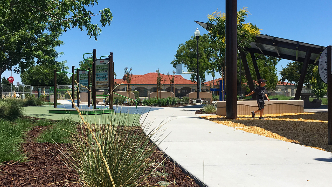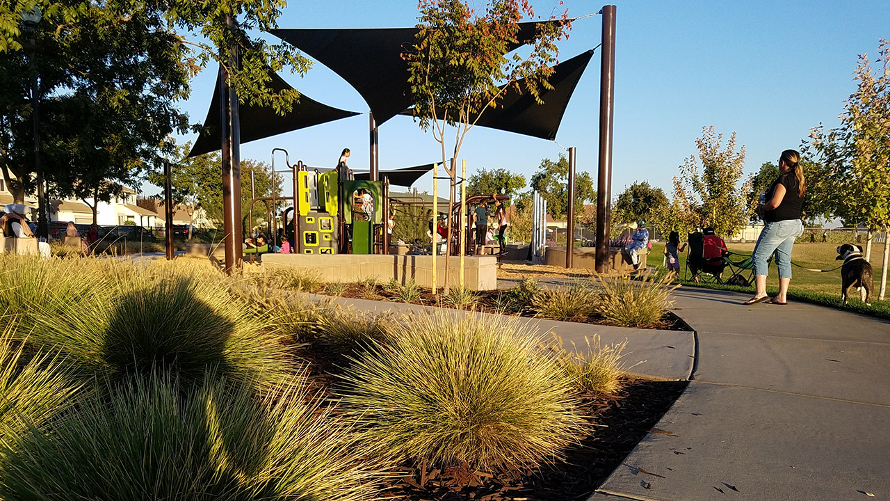 We developed a neighborhood park from initial concept to construction, including the design of a playground area, picnic facilities, basketball court, outdoor exercise equipment, and an off-leash dog park with amenities such as shade structures, seating, and dog bowl drinking fountains, making it the first dog park in the city.