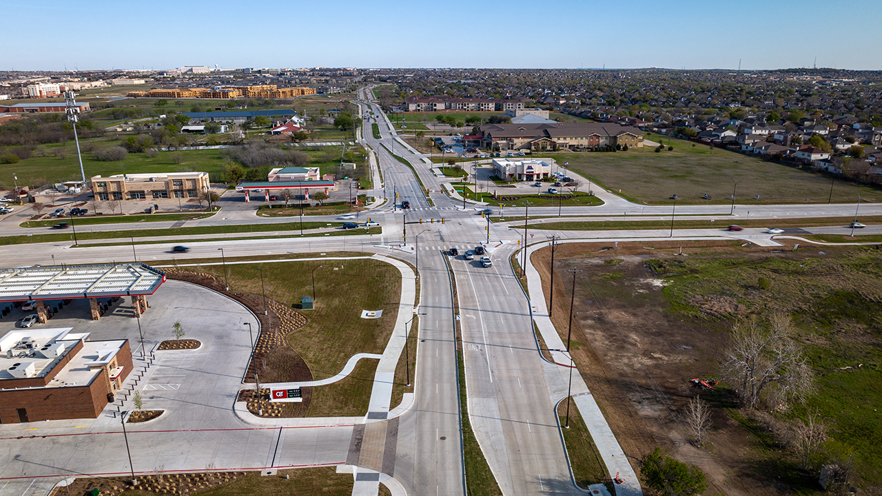 Reconstruction of a 5,700 LF two-lane asphalt roadway into a four-lane divided concrete road, including a high-traffic intersection, a roundabout, and 3,300 LF of waterline, while adding ten-foot-wide multi-purpose trails and dedicated bike lanes to enhance mobility and safety for all users.