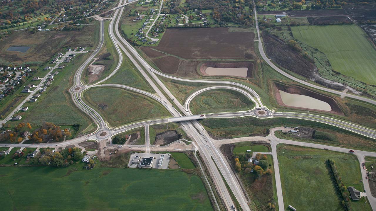 Replacement of the existing at-grade intersection with a partial cloverleaf interchange.